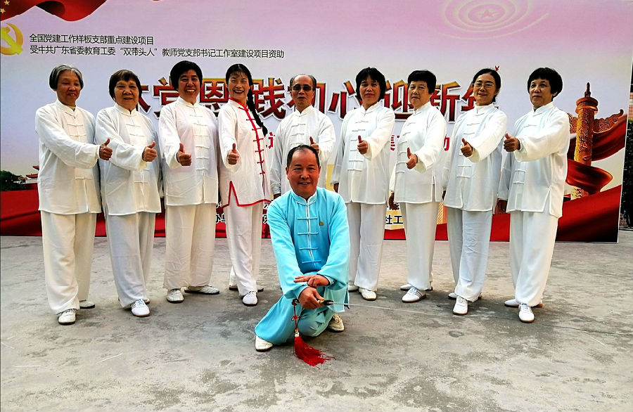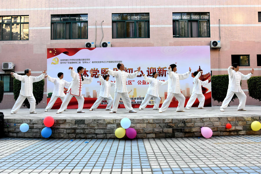 2019年12月27日下午,应学校管理学院党总支邀请,广轻退休太极拳协会参与“四个文化进社区”——“沐党恩,践初心,迎新年”活动,广轻太极拳协会集体表演了42式太极拳和朱国强教练表演了32式太极剑节目。