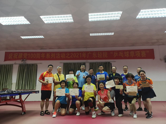 为庆祝中国共产党建党100周年,更好地倡导全民健身、增强体质,由学校工会、校教工乒乓球协会联合主办的"2021年广东轻院乒乓球单项比赛“于2021年5月15日及5月22日在广州校区教工活动中心顺利举行。