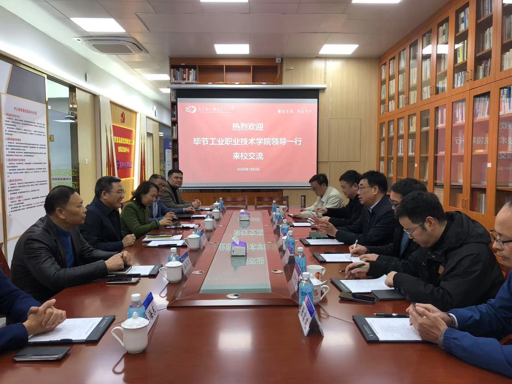 1月6日上午,毕节工业职业技术学院党委书记周杰一行6人到访我校,副校长官春平在新港校区接待了到访客人。